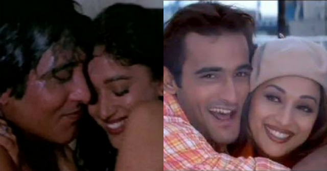 Madhuri Dixit was one of the famous actress of 90s who never shied away to experiment any kind of role on-screen. In her acting career Madhuri did romance with both father and son of Khanna family. How can anyone forget her news making intimate scene with Vinod Khanna in 1988 film ‘Dayavan’. The kiss shared between Vinod and Madhuri in the shower became hot gossip of B-town back then and till today is arguably one of the most intimate scenes Madhuri has ever done. Later she romanced with son Akshaye Khanna in “Mohabbat ” (1997). They both were the love interest of each other in the film.