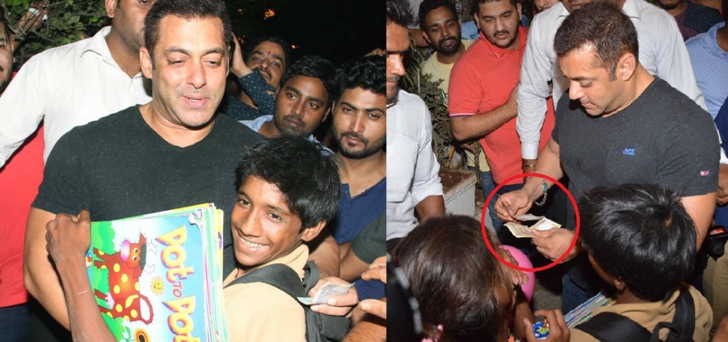 Salman Khan is known for having a huge and generous heart when it comes to donations. It is reported that once Bhai walked out of a restaurant and noticed poor children selling books and balloons. The very down-to-earth Salman Khan shook hands with them, exchanged hugs and later made donations to those children.