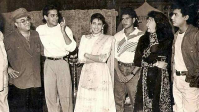 Salman Khan with Govinda during the shooting of one of their films many years ago